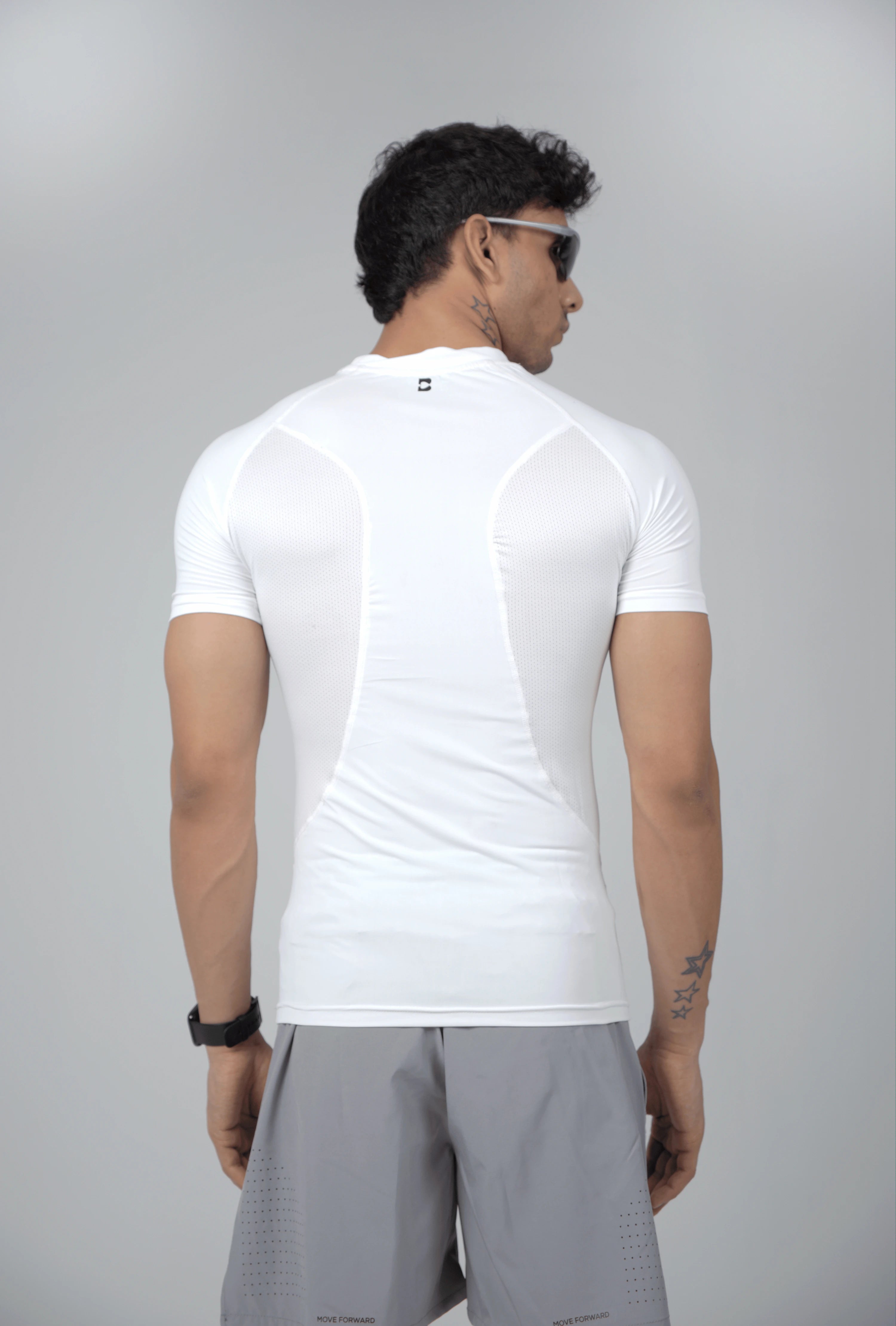 The Hyperskin Compression Tee is made to stay close and move clean. It features mesh zones across high heat areas for breathability and a soft, cool-touch fabric that holds through every rep. Lightweight and minimal, it’s built to support without distraction.